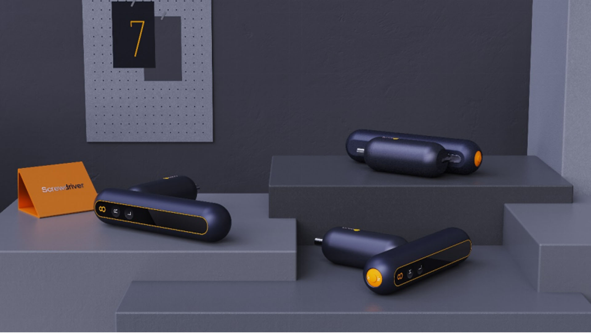 设计理念:目前市场上的电动螺丝刀普遍存在不便长时间操作,不便收纳、不便运输等问题,针对这些问题,我们发明了一款全新的支持可以单手操作和双手操作的折叠便携螺丝刀。它的头部可以沿着手柄里面的轨道移动和固定,用户可以根据使用情况调整头部的位置以找到最舒适和省力的工作状态,这样的话在长时间使用后可以调整为双手操作,这也使得女性用户也能轻松使用;不使用时还可以将它的头部折叠,方便运输以及日常收纳。