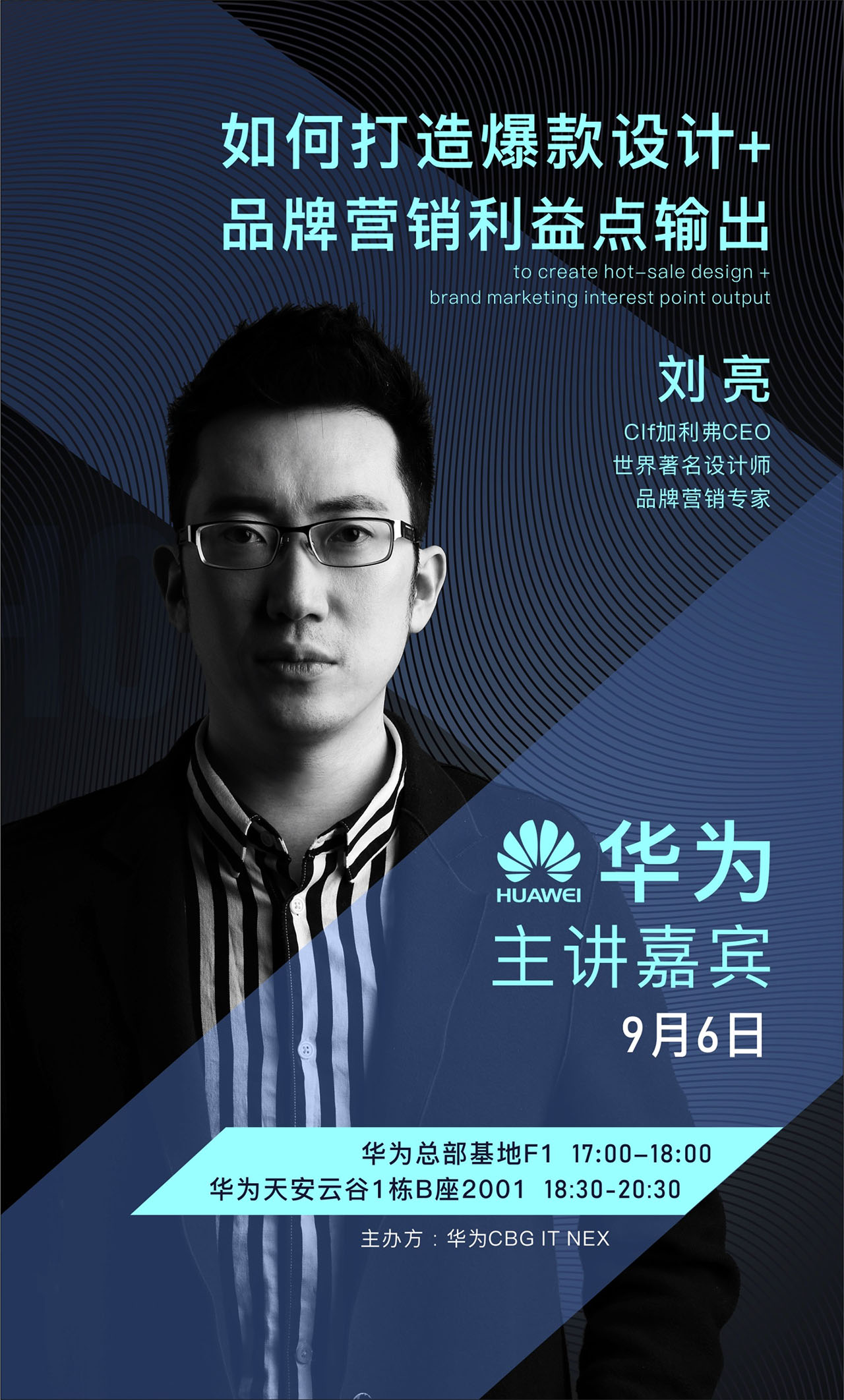 标题:华为总部邀请加利弗CEO刘亮开设《如何爆款设计+品牌营销利益点输出》的讲座